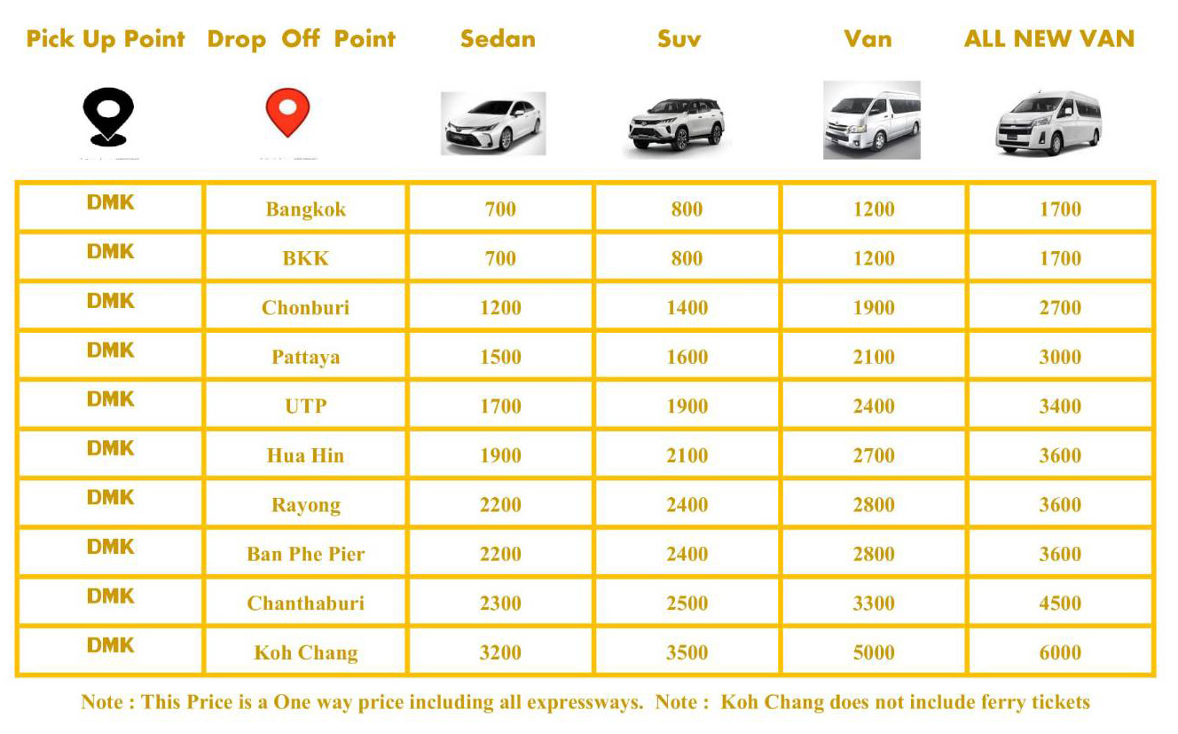 Transfer Rates from Donmueang Airport to Popular Destinations