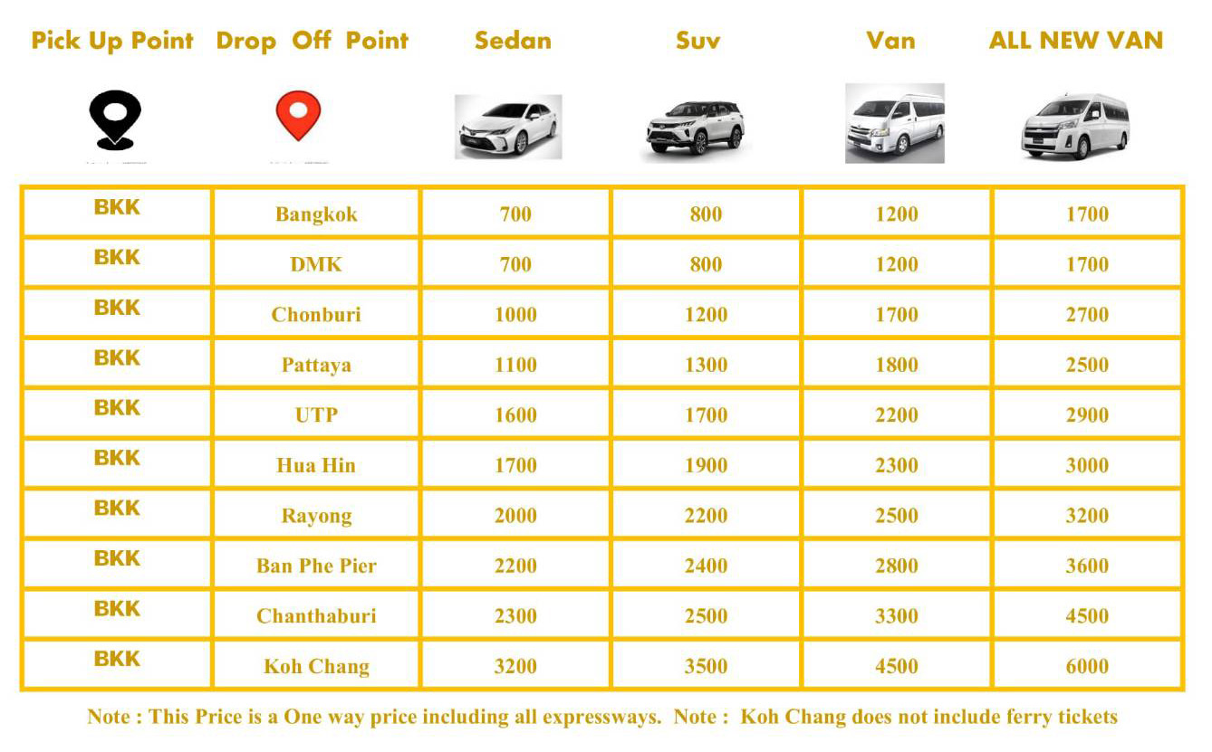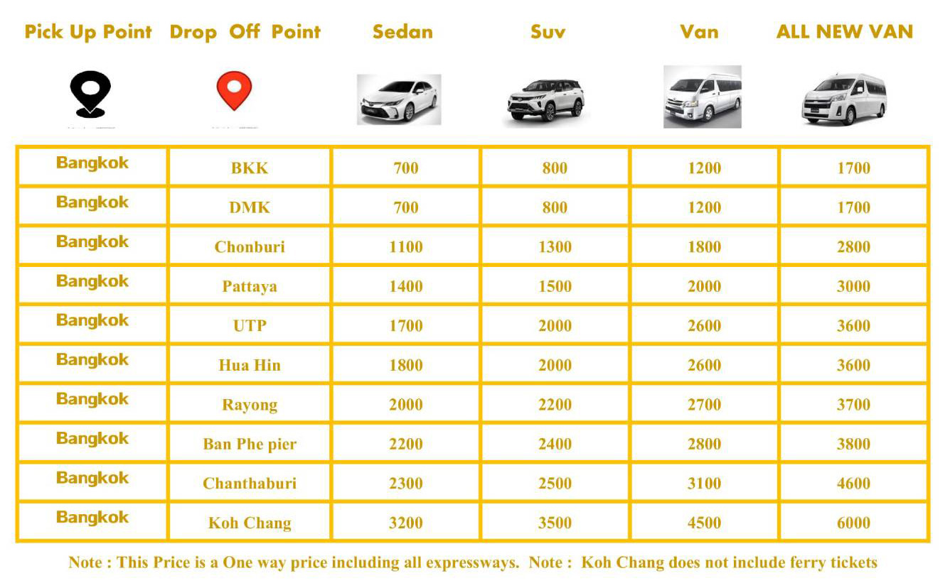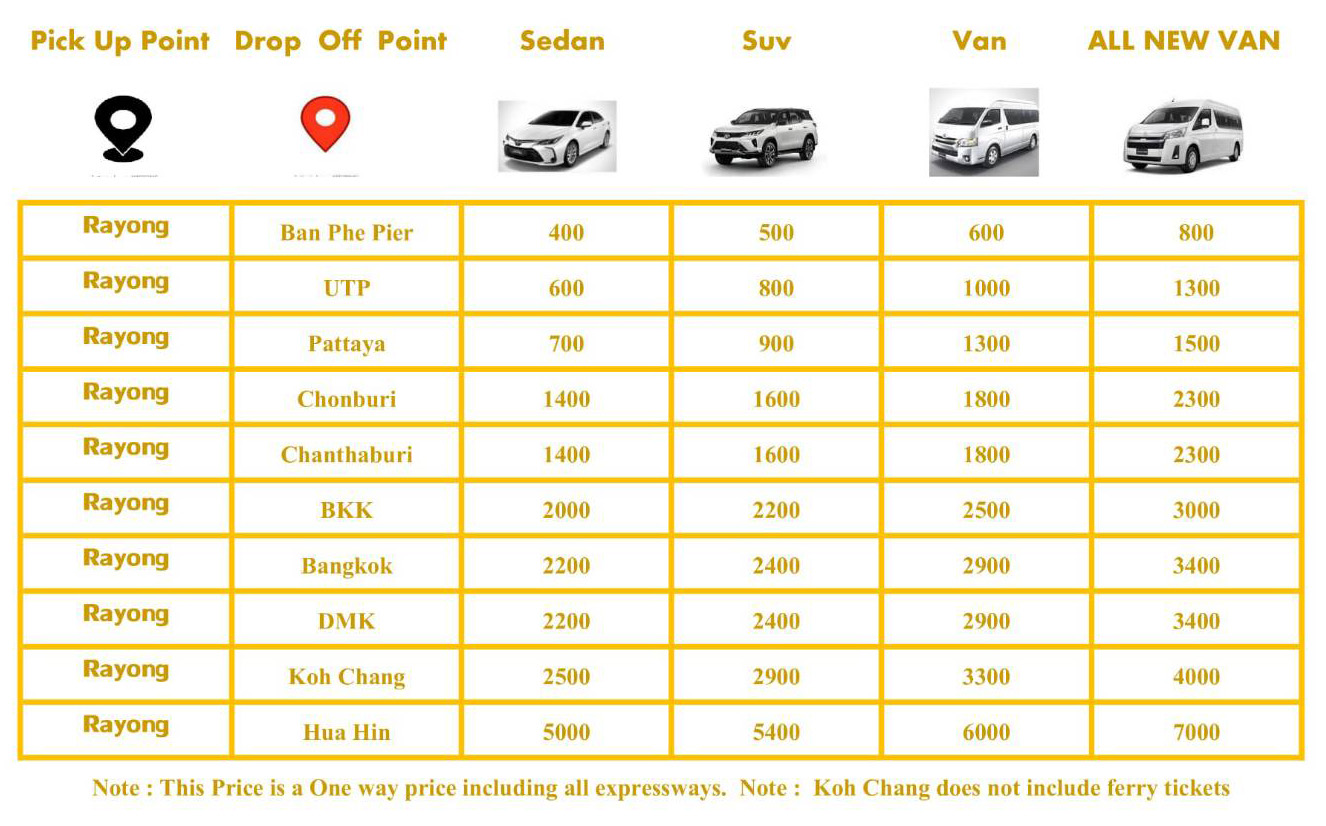 Hello, welcome to the Taxi Private Thailand website. For customers who wish to book a transfer from Rayong, Pattaya, Bangkok to the airport, or want to tour any province in Thailand, you can book a car through this website. We have 5-seat sedans, 7-seat cars, and VIP vans available for service 24 hours a day.